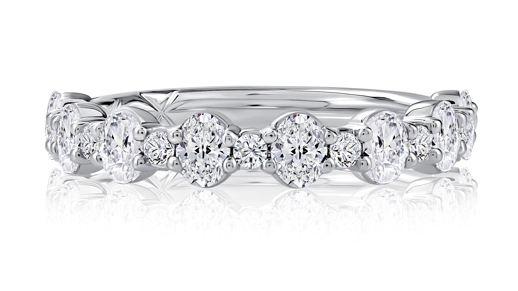 A. Jaffe Shared Prong Bright Polished Anniversary Band with 0.95cttw Natural Diamonds