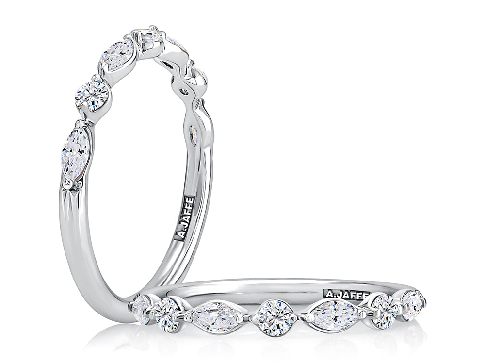 A.Jaffe Alternating Marquise and Round Diamond Anniversary Band in 14K White Gold