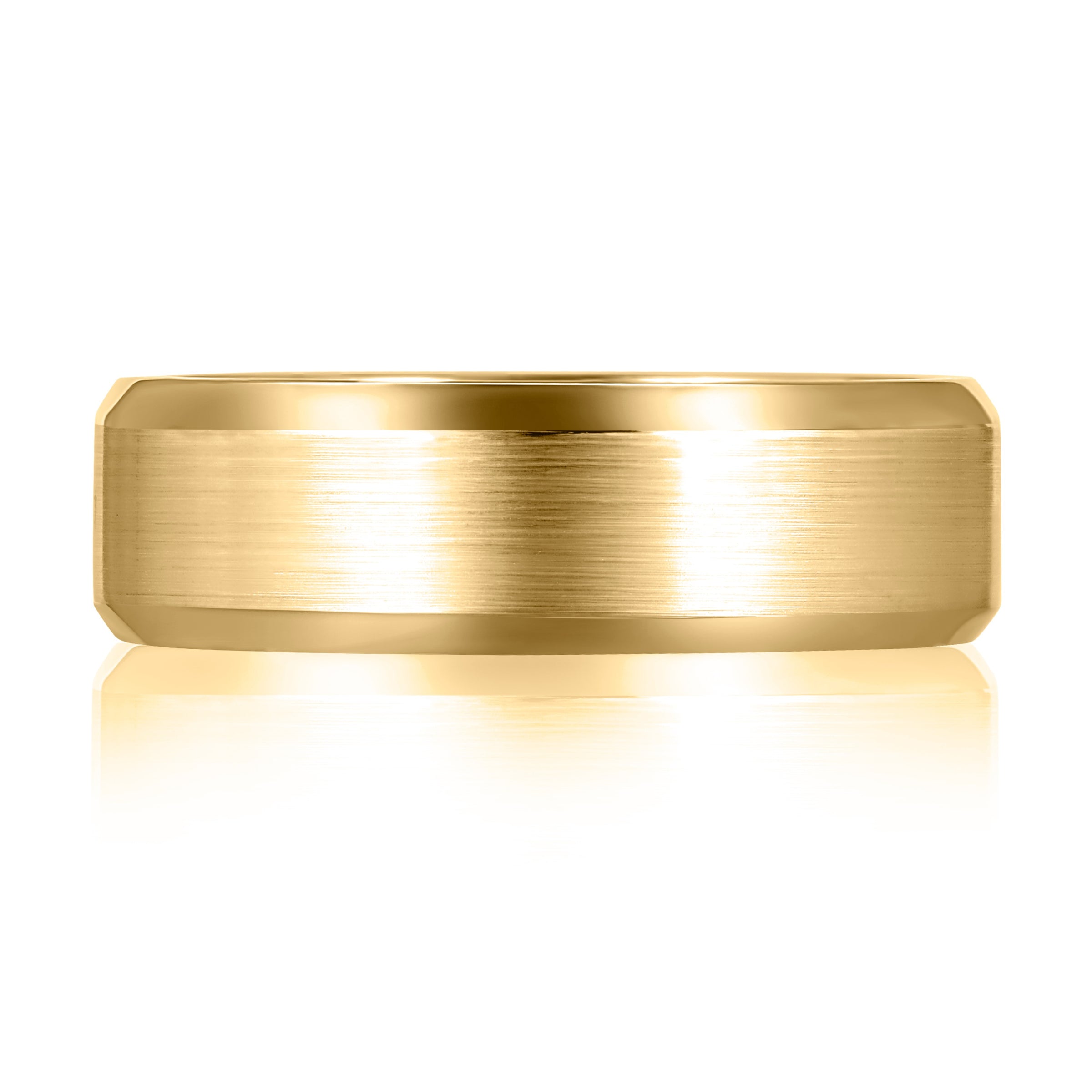 Add a touch of sophisticated elegance to your look with this A. Jaffe men's band. Crafted in 14K yellow gold, the ring features a 7mm wide satin center with high polish beveled edges for a modern contrast. The expandable design ensures a comfortable fit, making it a perfect choice for daily wear or special occasions.