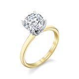 14Kt Yellow Gold Solitaire Engagement Ring Mounting with a 14Kt White Gold Regal Crown with 4 natural diamond accents totaling 0.04cttw (Color G-H, Clarity SI1)- 1Ct Round Center Stone Sold Separately