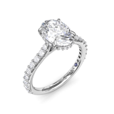 Fana 14Kt White Gold Hidden Halo Natural Diamond Ring Setting Oval Center .48cttw (H - SI1) - 1ct Oval Center Sold Separately