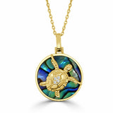 Frederic Sage 14Kt Yellow Gold 16.5mm Turtle Natural Diamond Back on Abalone "Happy" Pendant