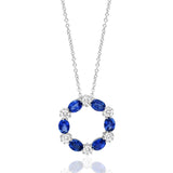 14Kt White Gold Circle Pendant with 6 Alternating Oval Sapphires Totaling 1.38cttw and 6 Oval Natural Diamonds Totaling 0.29cttw on 18" Cable Chain with Lobster Clasp