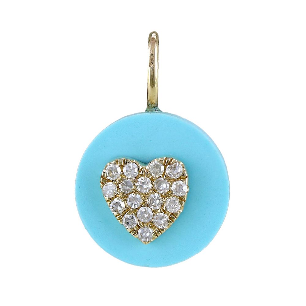 Lasker Charmed 14Kt Yellow Gold Diamond Heart Turquoise Pendant