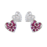 14Kt White Gold Double Heart Stud Earrings with Ruby and Natural Diamonds