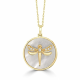 Frederic Sage 14Kt Yellow Gold Happy Dragonfly Pendant with Mother of Pearl Inlay and 7Totaling.04cttw Natural Diamond Accents on an 18" Cable Chain with a Lobster Clasp