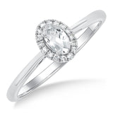 10Kt White Gold 5x3mm Oval White Topaz & 0.07cttw Diamond Halo Ring - Size 6.5