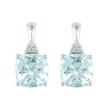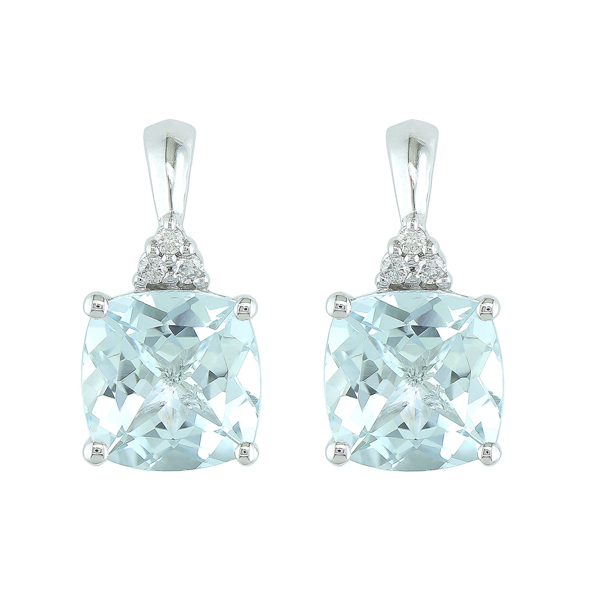 14Kt White Gold Drop Earring with 2 Cushion Aquamarine Totaling 2.75cttw (7mm) And 6 Round Natural Diamonds Totaling .05cttw