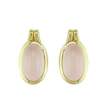 14Kt Yellow Gold Oval Bezel Stud Earrings With 2 Oval Cabochon Rose Quartz Totaling 3.78cttw (10x6mm)