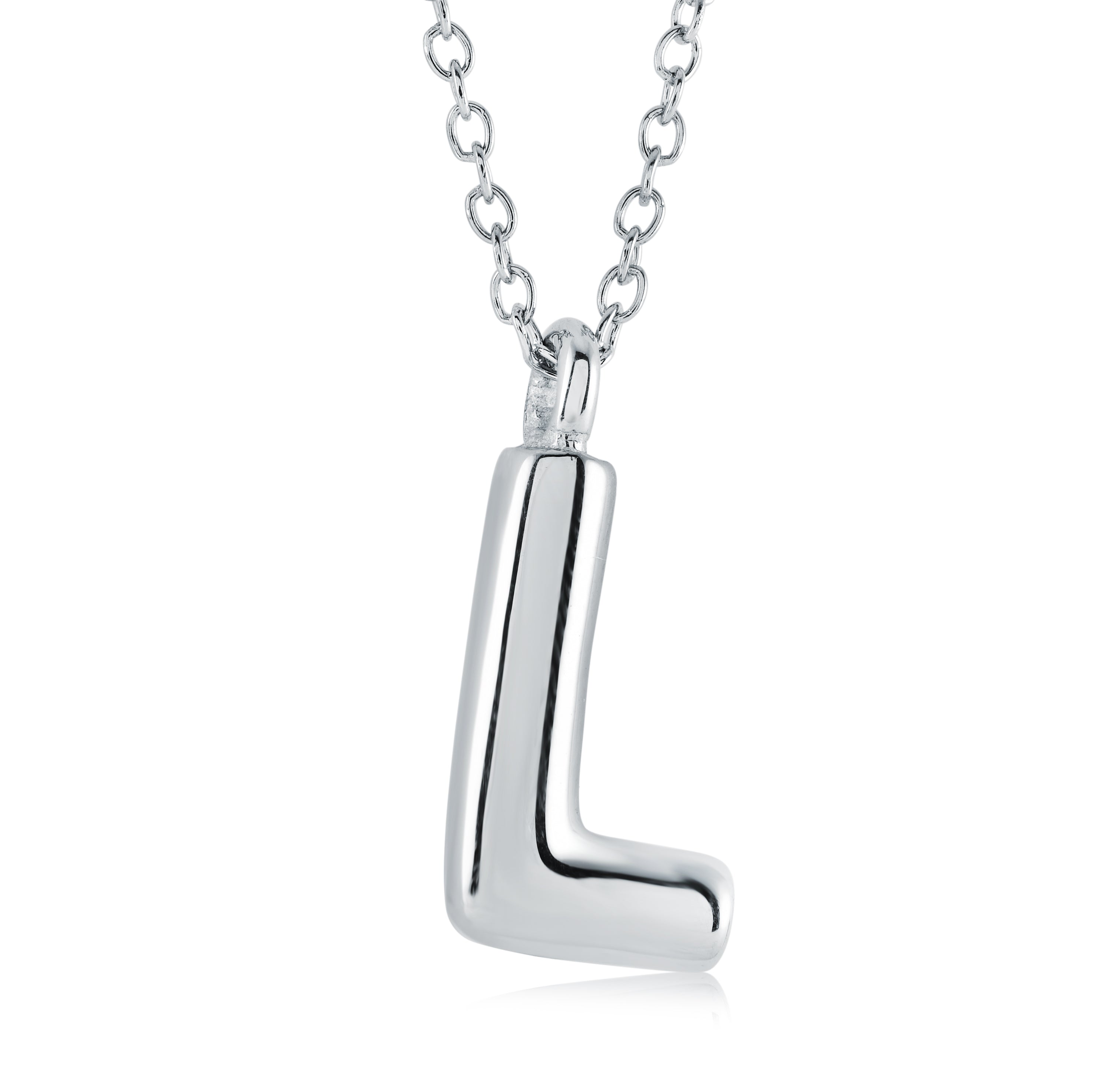 Veloria Stainless Steel Bubble Initial L Pendant on a 18" Adjustable Chain