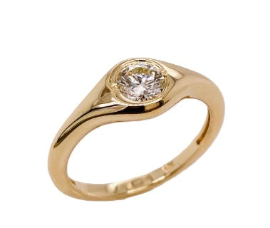 14Kt Yellow Gold Flush-Set 0.40ct Diamond Signet Ring - Size 7
