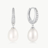 Ania Haie Pave Drop Huggie Earrings in Sterling Silver with Cubic Zirconia and Freshwater Pearls (8.5x1.5mm)