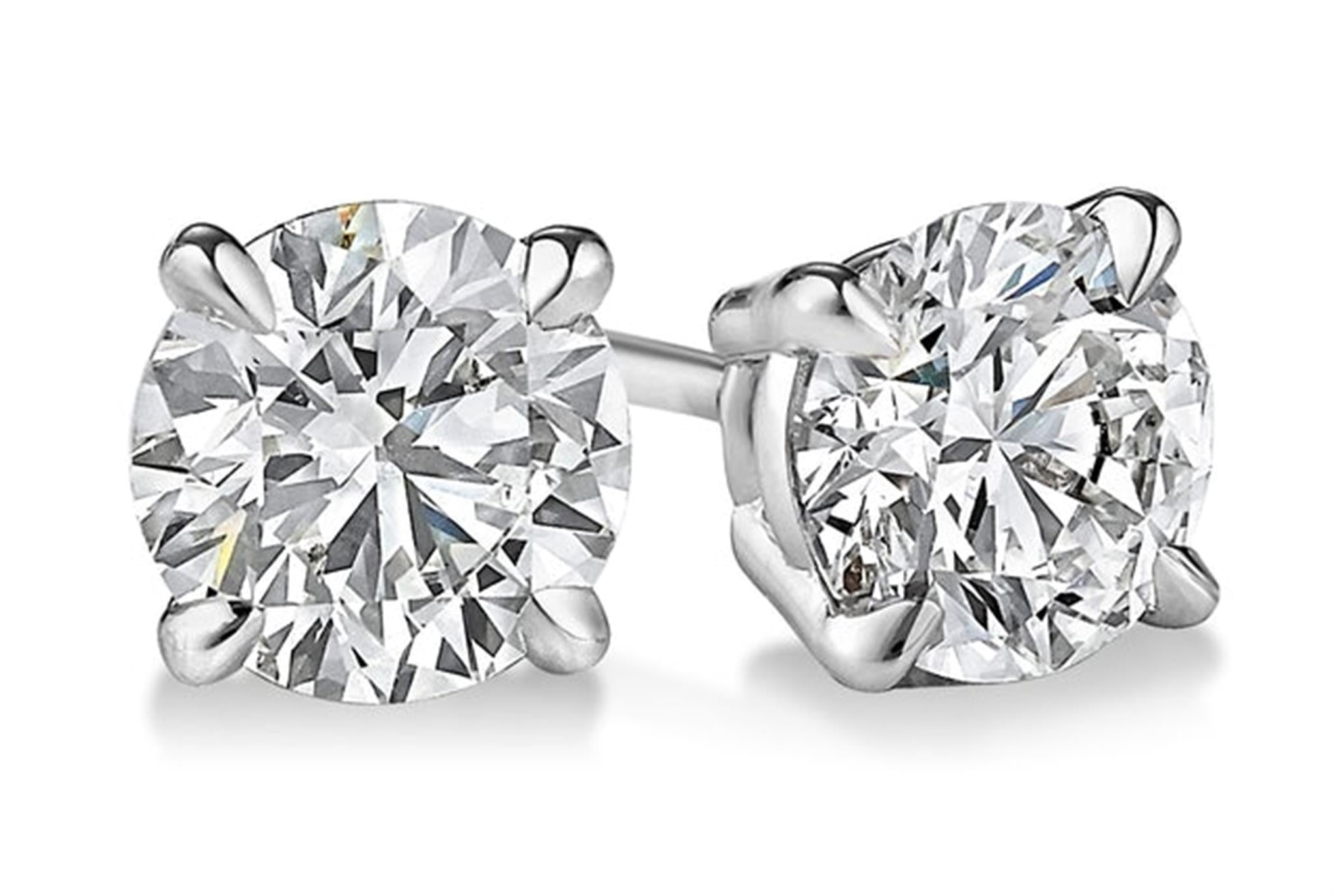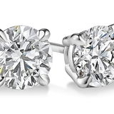 14Kt White Gold 4- Prong Stud Earrings with 2 Round Natural Diamond Natural Diamonds Totaling 4.00Ctttw (K/L Color - SI1/SI2 Clarity) And Screw-On / Screw-Off Giant Backs