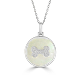 Frederic Sage 14Kt White Gold Happy Dog Bone Pendant with White Mother of Pearl and 18Totaling.07cttw Natural Diamond (G/H Color - SI1 Clarity) on 18" Cable Chain