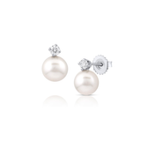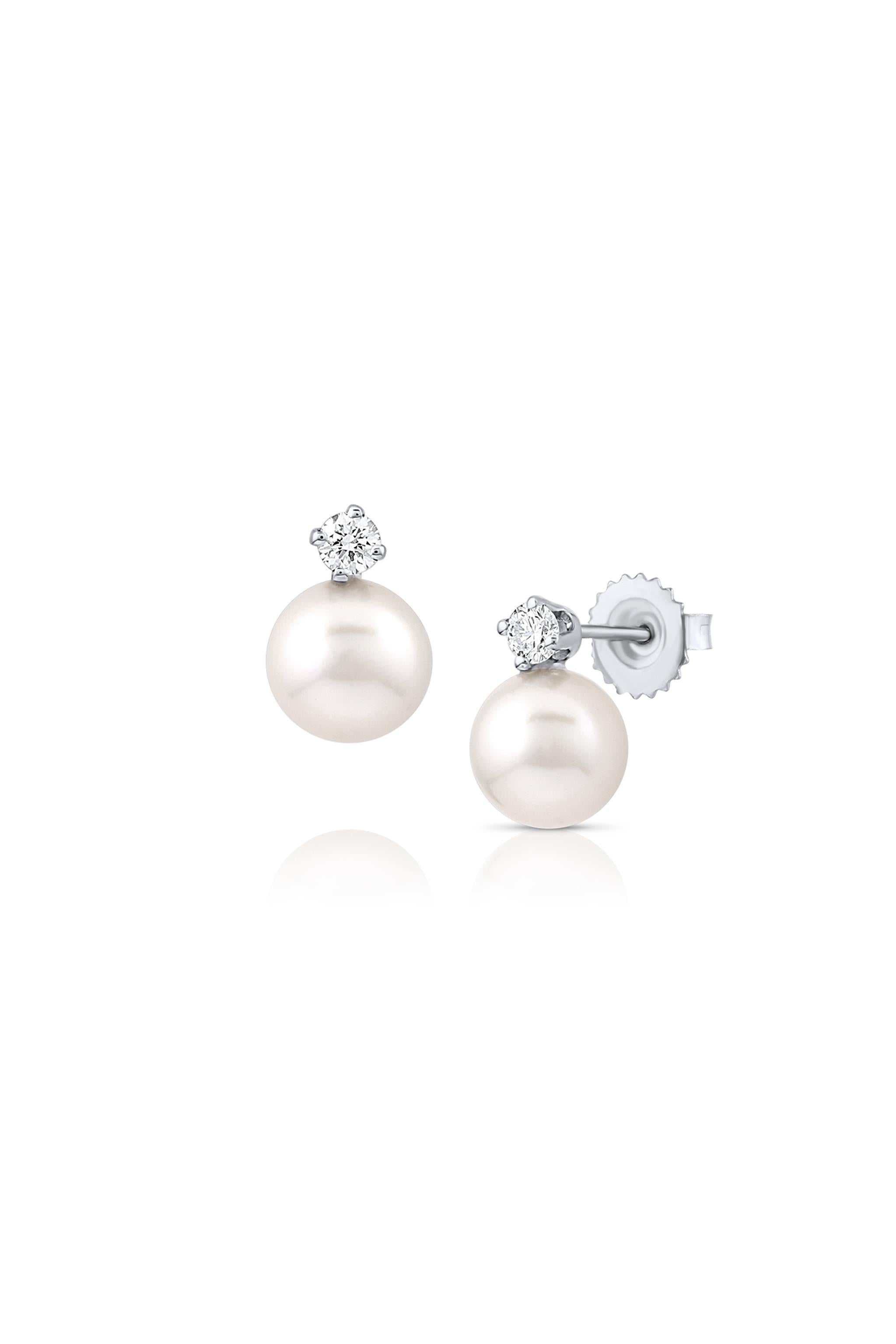 18Kt White Gold 7.5-8mm Japanese Akoya Cultured Pearl Earrings with.20cttw Natural Diamonds (Color G-H, Clarity SI1)