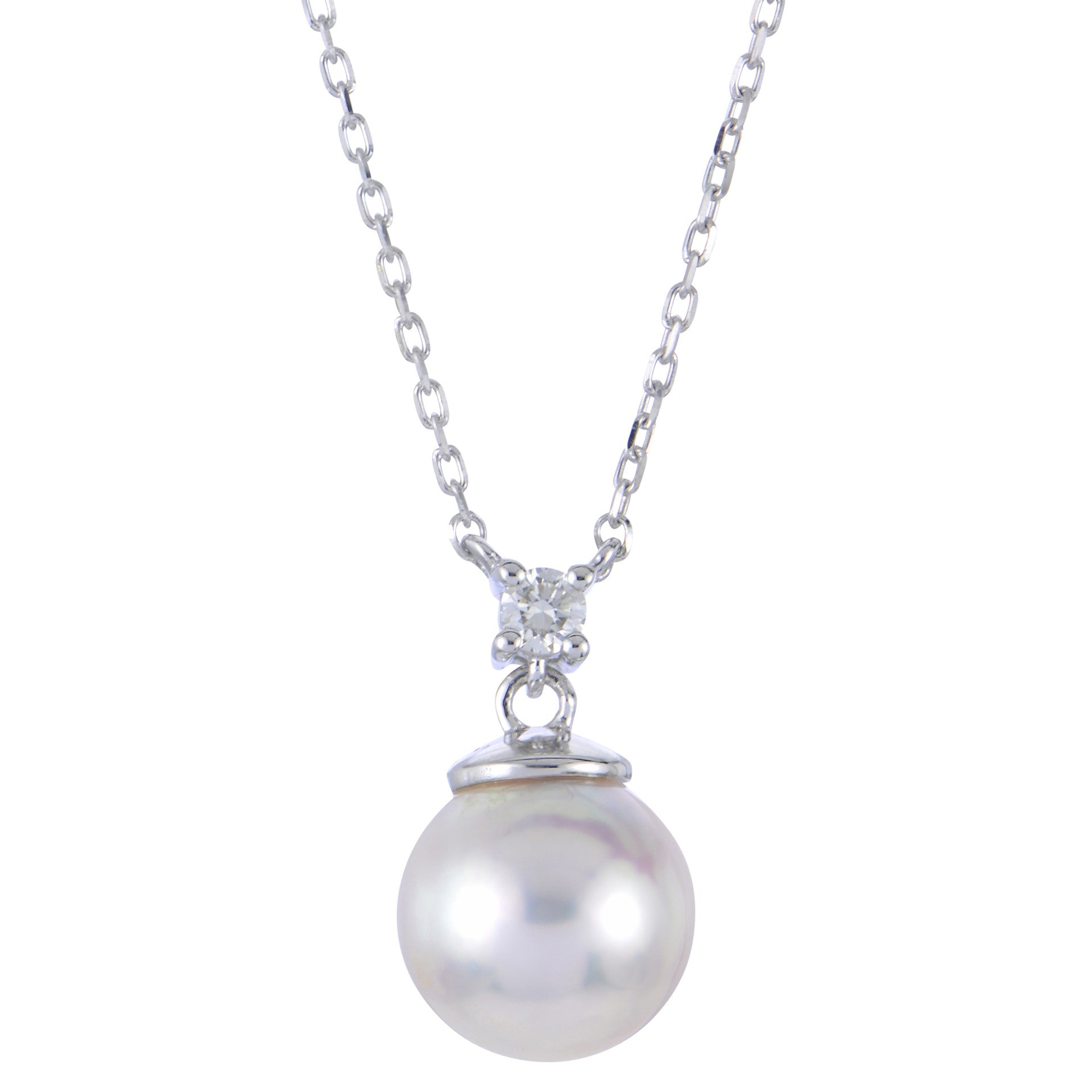14Kt White Gold 18" 8-8.5mm Akoya Cultured Pearl Pendant with a Natural .05Ct Diamond and a Lobster Clasp
