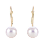 14Kt Yellow Gold Leverback Earrings with 7mm Akoya Cultured Pearls
