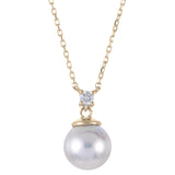 14Kt Yellow Gold 18" 8-8.5mm Akoya Cultured Pearl Pendant with a Natural .05Ct Diamond and a Lobster Clasp