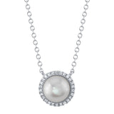 Shy Creation 14Kt White Gold Cultured Pearl & Diamond Halo Necklace