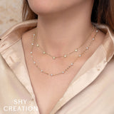 Shy Creation 14Kt Yellow Gold Cultured Pearl Sparkle Chain Necklace