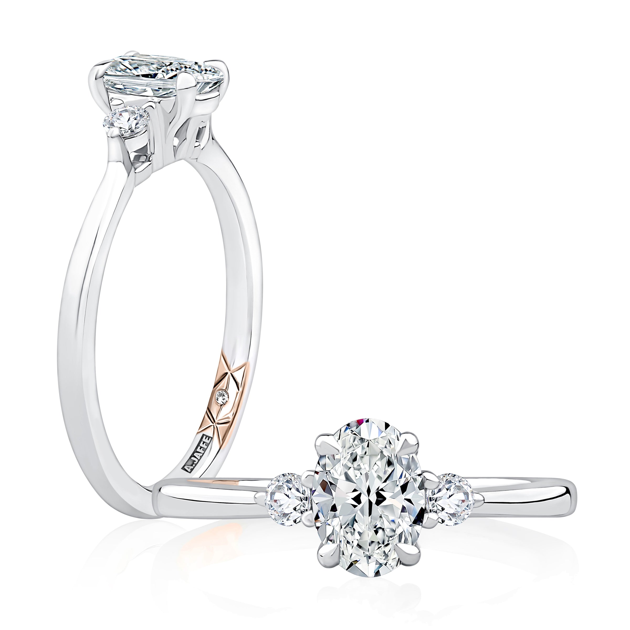 A. Jaffe Three-Stone Engagement Ring Mounting in 14K White Gold