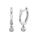 Shy Creation 14K White Gold with Bezel Set 0.07ctw Diamond Dangle Huggie Hoop Earrings