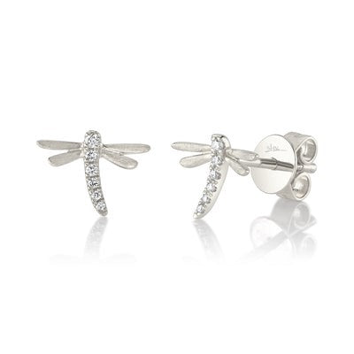 Shy Creation 14Kt White Gold Dragonfly Diamond Stud Earrings with .05cttw (H Color - SI1 Clarity) with Friction Back Posts