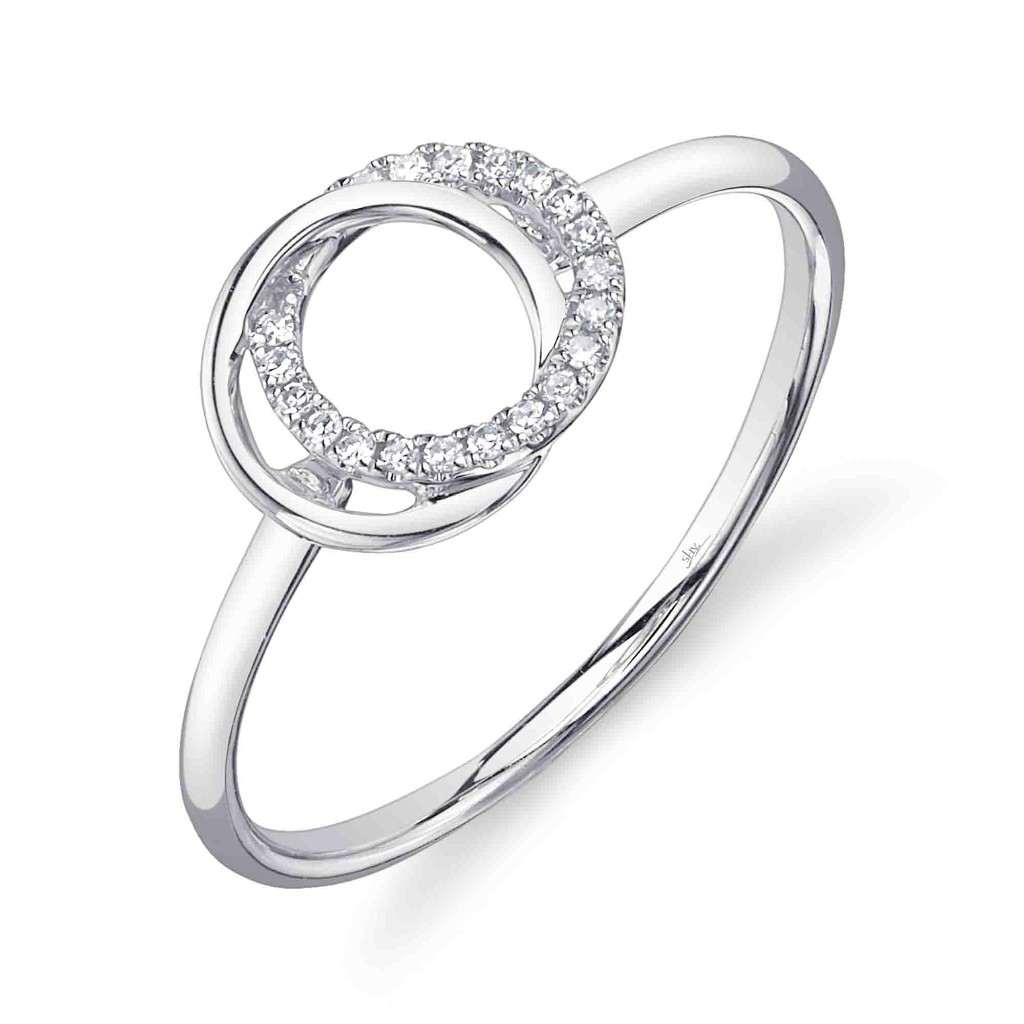 Shy Creation 14Kt White Gold You and Me Intersecting Circle Ring with .07 Cttw Natural Diamonds (Color G-H, Clarity SI)