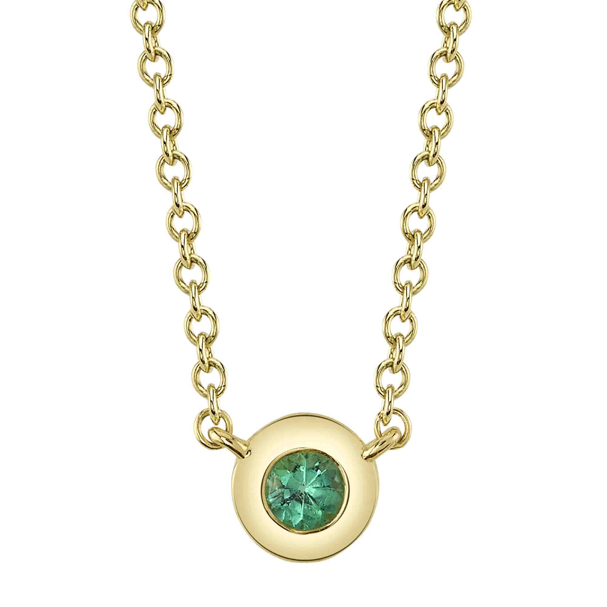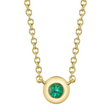 Shy Creation 14Kt Yellow Gold Necklace with .04Ct Bezel Set Emerald on an Adjustable 18" Cable Chain with a Lobster Clasp