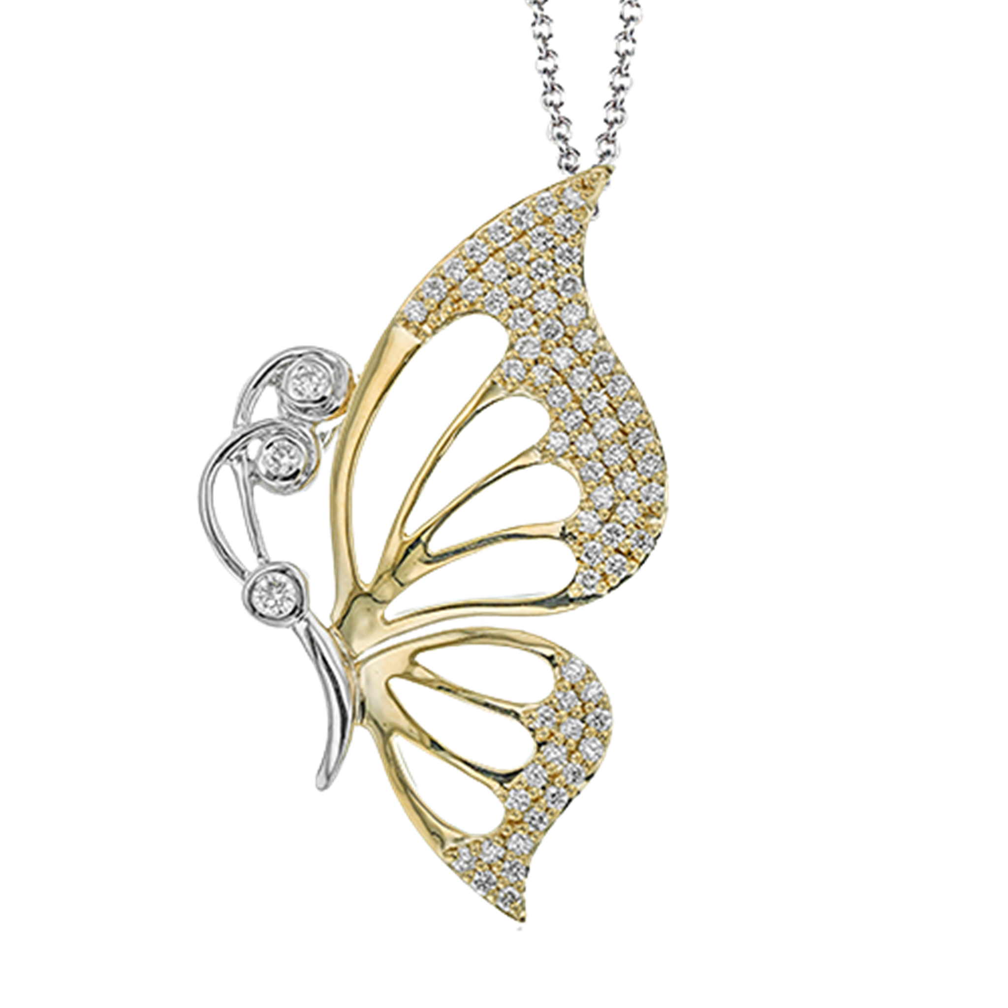 Simon G 18Kt Yellow and White Gold Butterfly Pendant with 73=.44cttw Diamonds (Color G-H, Clarity VS2) on an 18" Adjustable Cable Chain with a Lobster Clasp Serial # 779409