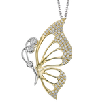 Simon G 18Kt Yellow and White Gold Butterfly Pendant with 73.44cttw Diamonds (Color G-H, Clarity VS2) on an 18" Adjustable Cable Chain with a Lobster Clasp Serial 799614