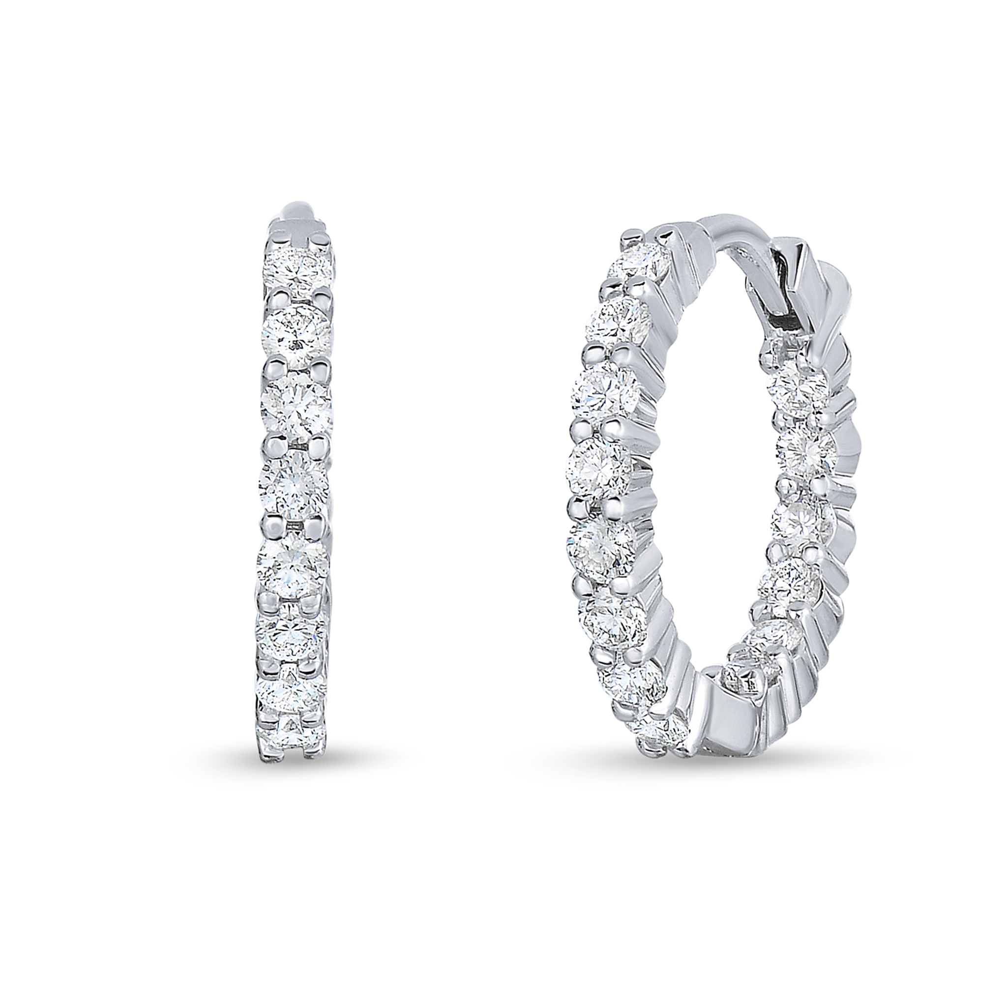 Roberto Coin 18Kt White Gold Petite Inside/Outside "The Perfect Diamond Hoop" Earrings with .76 Carats (G Color - SI1 Clarity) Round Natural Diamonds. Hoops measure 16mm.