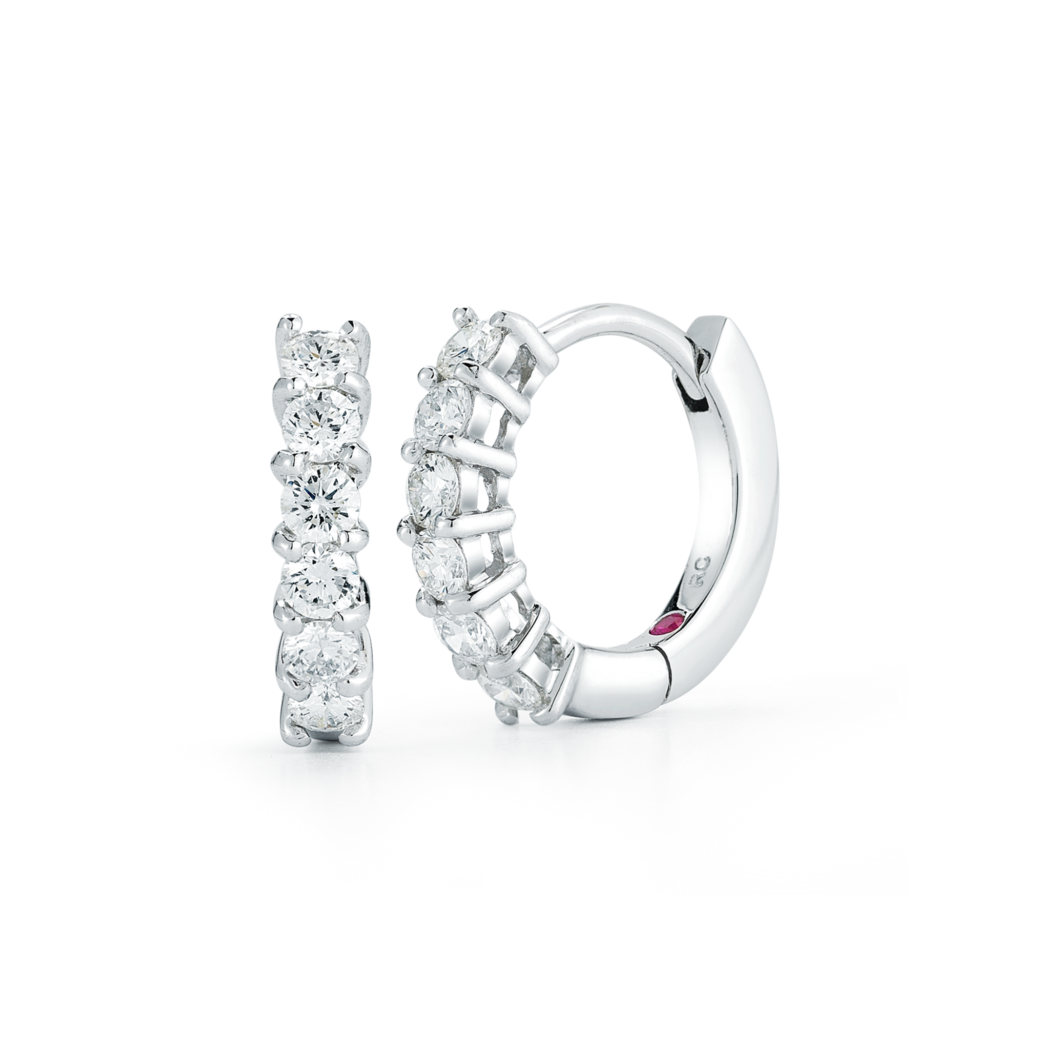 Roberto Coin 18Kt White Gold Hinged Huggy Hoop Diamond Earrings with 12 Round Natural Diamonds Totaling .70 Carats (G Color - SI1 Clarity). Hoops measure 15mm.