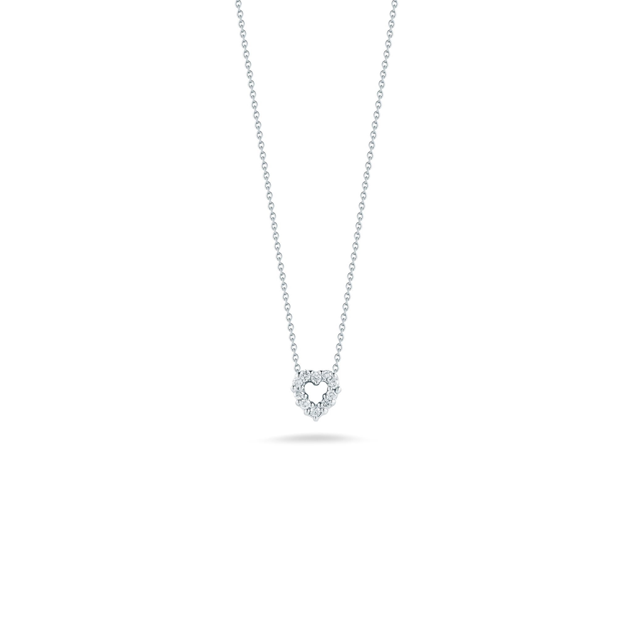 Roberto Coin 18Kt White Gold Tiny Treasures 0.11cttw Round Natural Diamond Heart Necklace