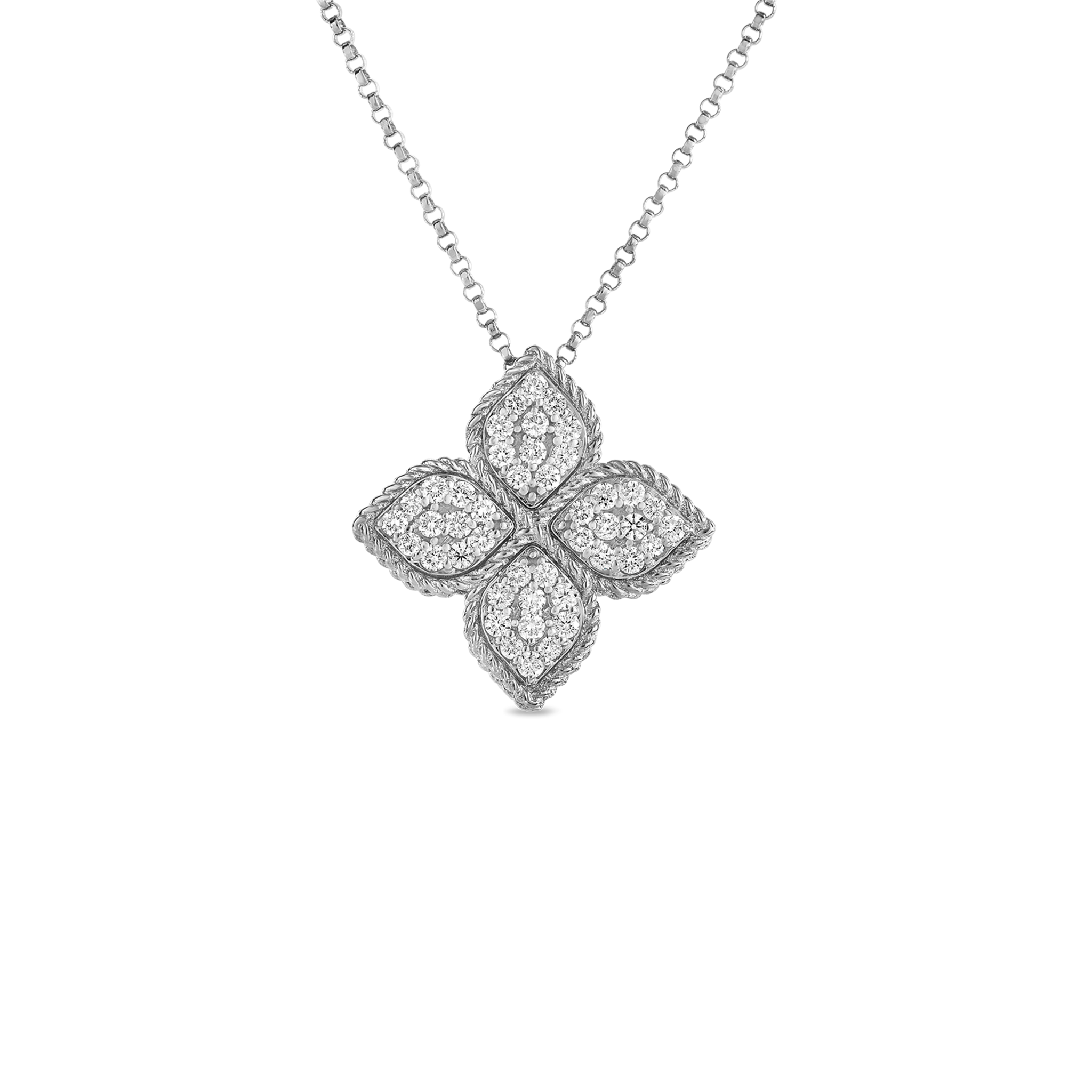 Roberto Coin 18Kt White Gold Princess 0.45cttw Round Natural Diamond Flower Pendant