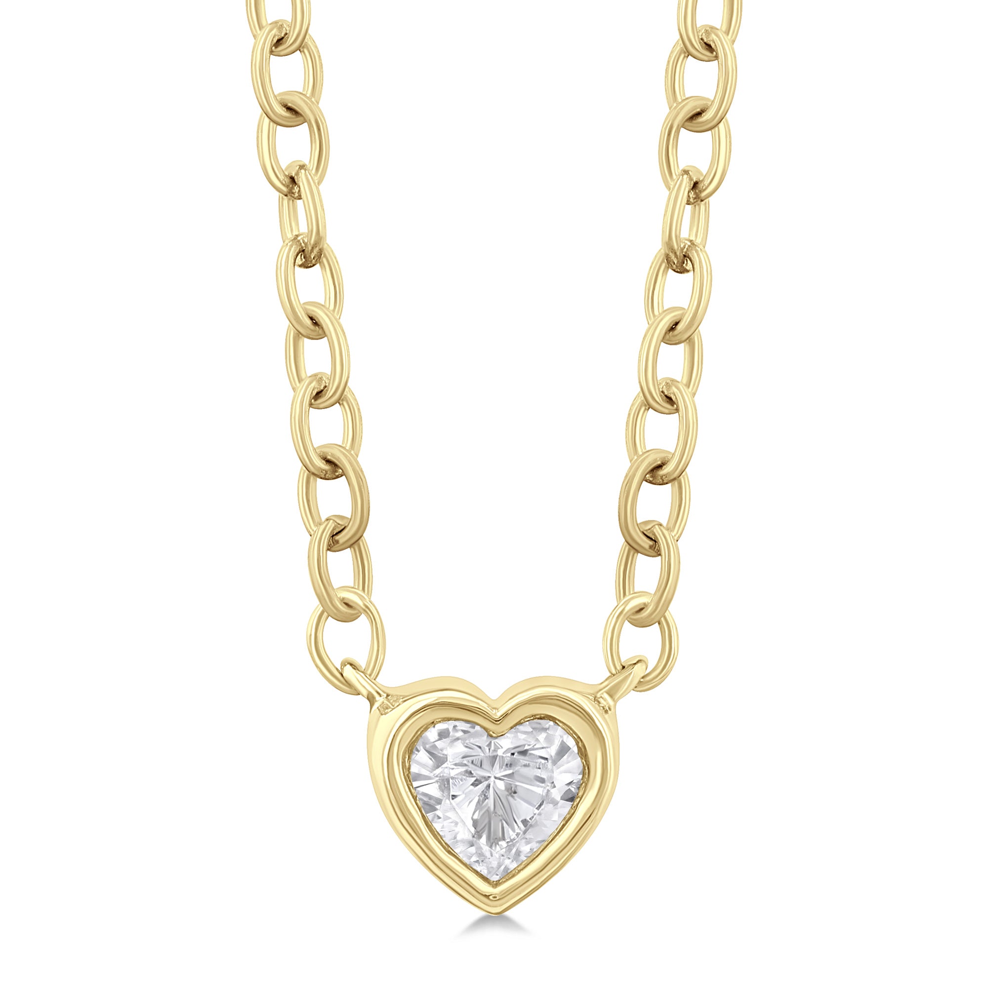 Lasker Petites 10Kt Yellow Gold Bezel Set Heart Shaped Diamond Pendant with .15Ct Natural Diamond (Color I-J, Clarity SI2-I1) on an 18" Adjustable Cable Chain
