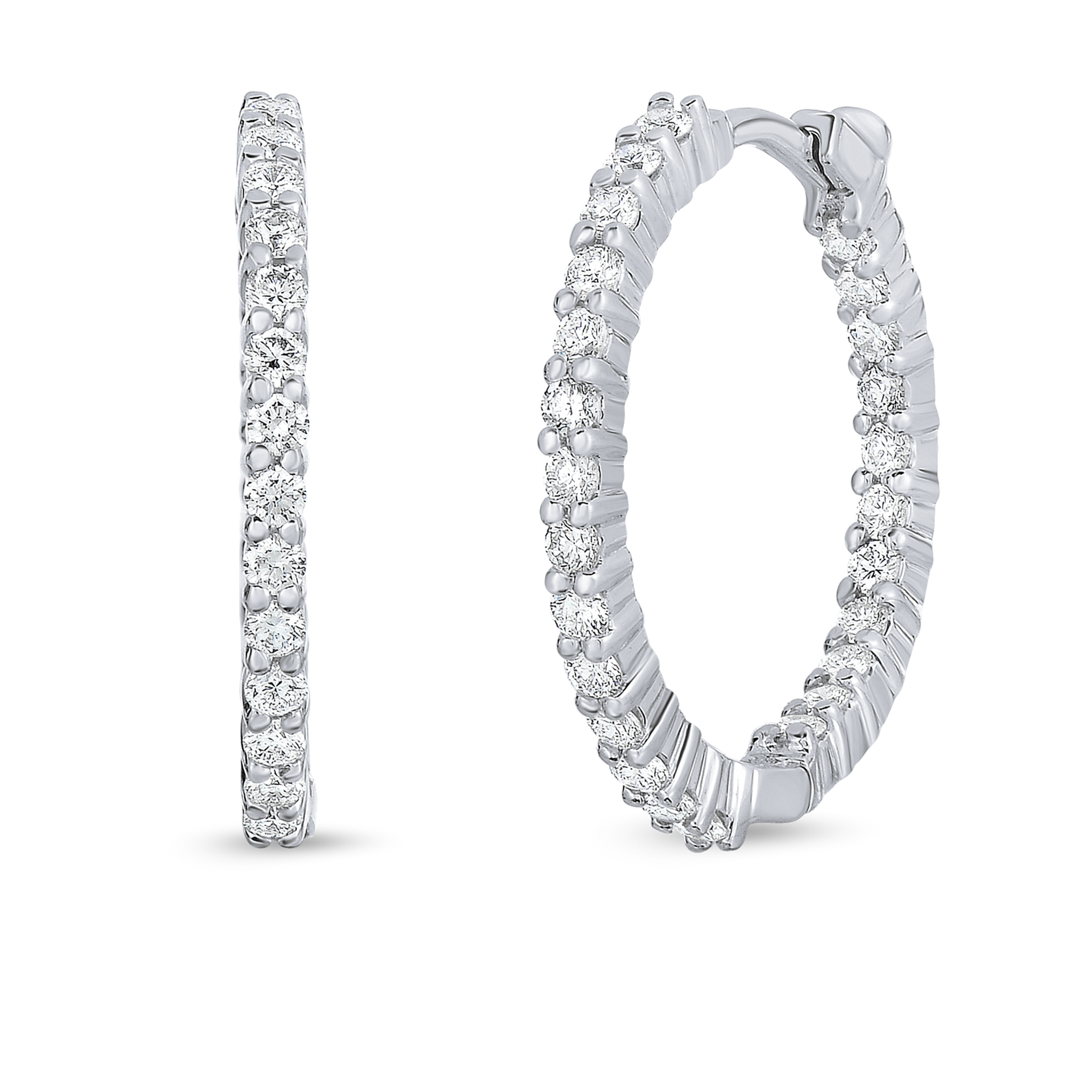 Roberto Coin 18Kt White Gold Extra Small Inside/Outside "The Perfect Diamond Hoop" Earrings with 1.00 Carats (G Color - SI1 Clarity) Round Natural Diamonds. Hoops measure 22mm.