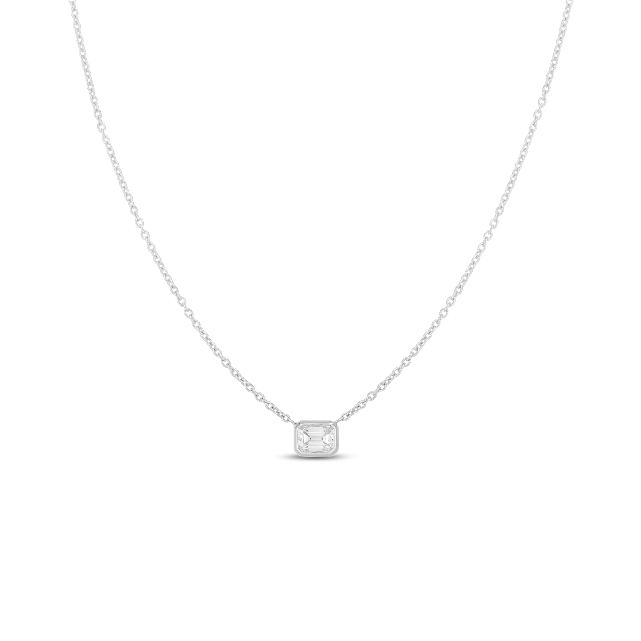Roberto Coin 18Kt White Gold Bezel Set 0.17cttw Emerald-Cut Natural Diamond Solitaire Necklace