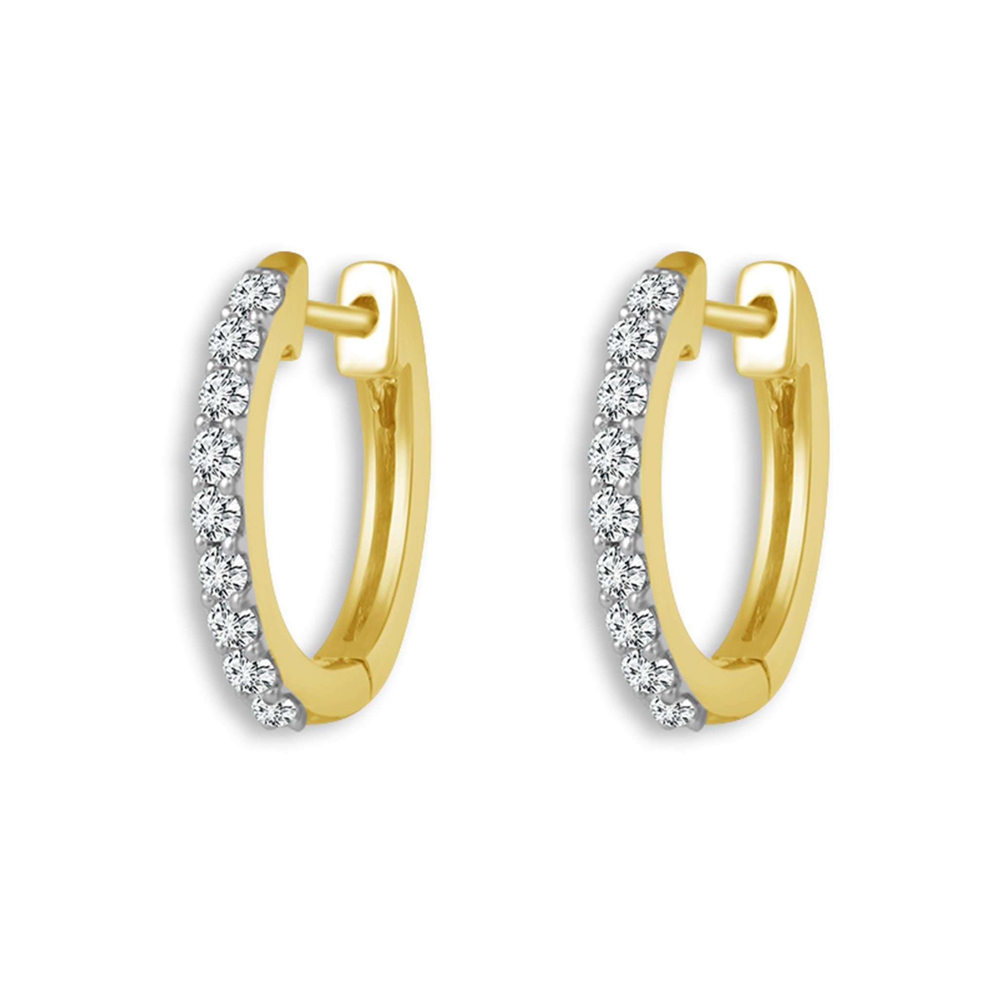 14KT Yellow Gold Everyday Hoop Earrings with .17cttw (H Color - SI2 Clarity)