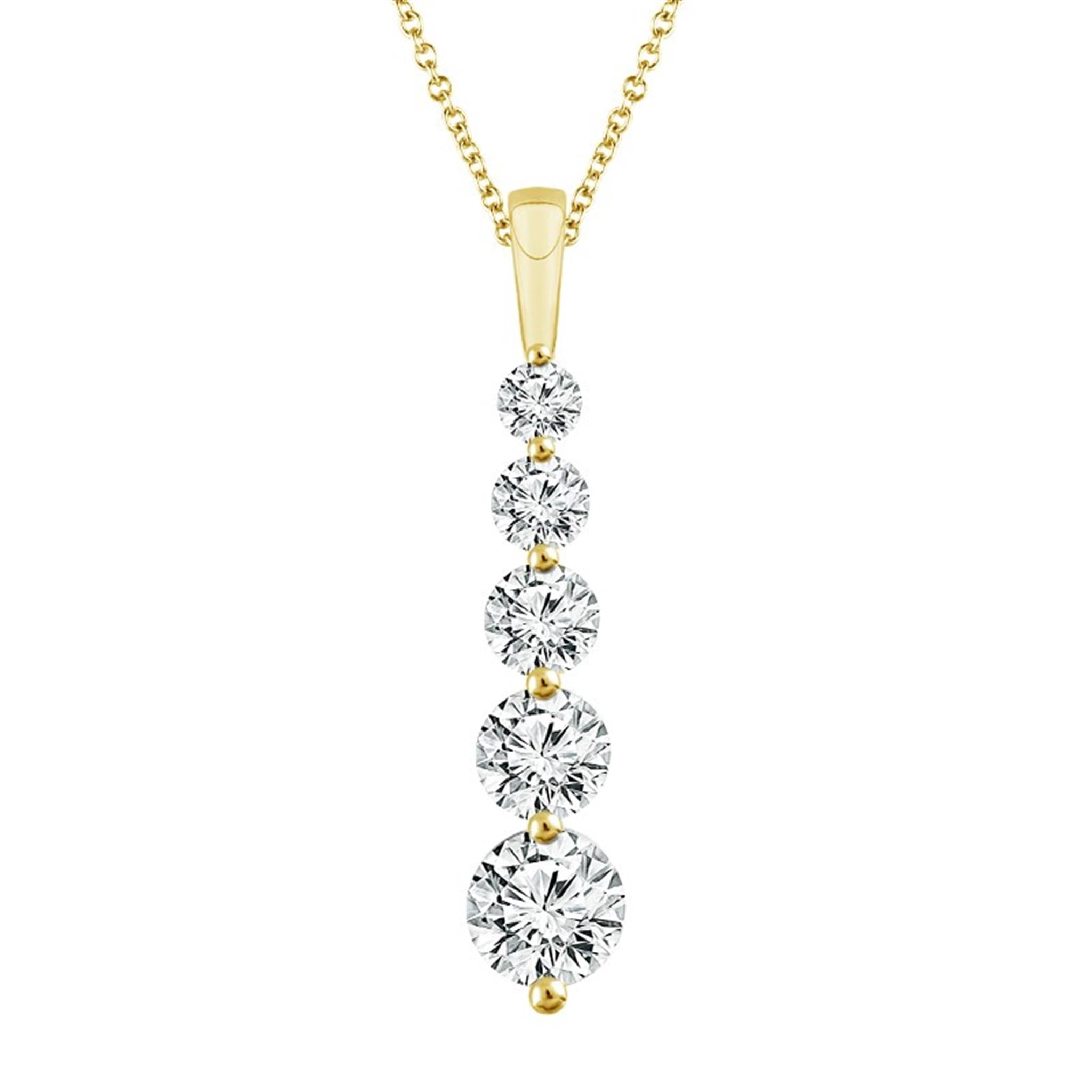 Celebrate Your Life's Journey With This 14kt Yellow Gold 5-Stone Journey Diamond Pendant with 1cttw Natural Round Diamonds (J Color - SI2 Clarity) on 16-18" Chain with Lobster Clasp
