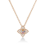 Roberto Coin 18Kt Rose Gold Venetian Princess Carnival Pave Diamond and Mixed Stones Small Flower Necklace