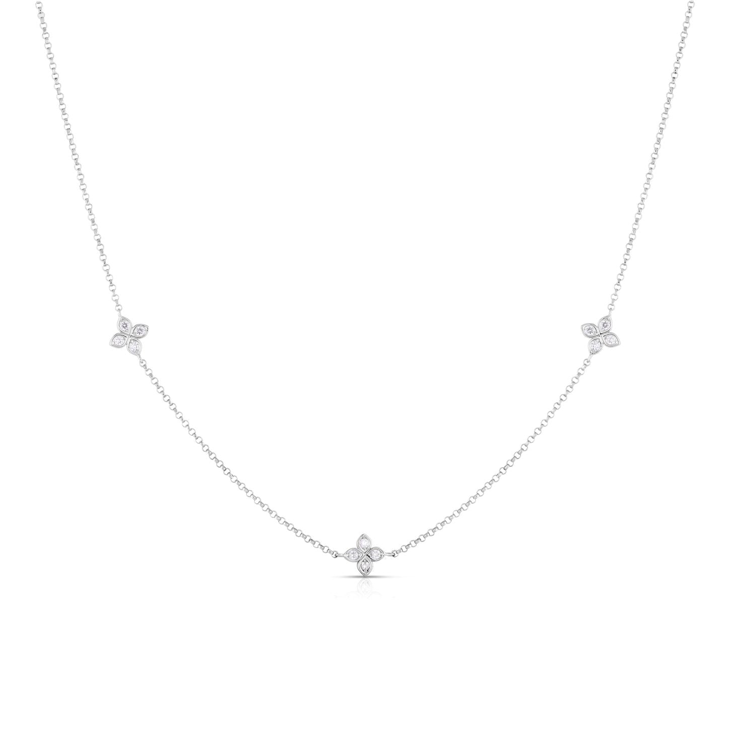 Roberto Coin 18Kt White Gold Love By The Inch 3 Station 0.22cttw Diamond Necklace
