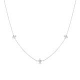 Crafted in 18K gold, the Love in Verona 3 Station Flower Necklace features three spaced floral diamond stations along a fine chain. Each flower catches the light with subtle sparkle, creating a feminine and elegant shimmer. Perfect for layering or wearing alone, this necklace offers timeless charm and versatility for any jewelry collection. Chain is approximately 17" Additional jump rings at 16", 15", & 14" Approximately 0.22 total carat weight