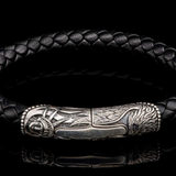 William Henry Yosemite Bracelet with Carved Sterling Silver, Magnetic Closure On 8mm Braided Black Leather Cord - Size Large