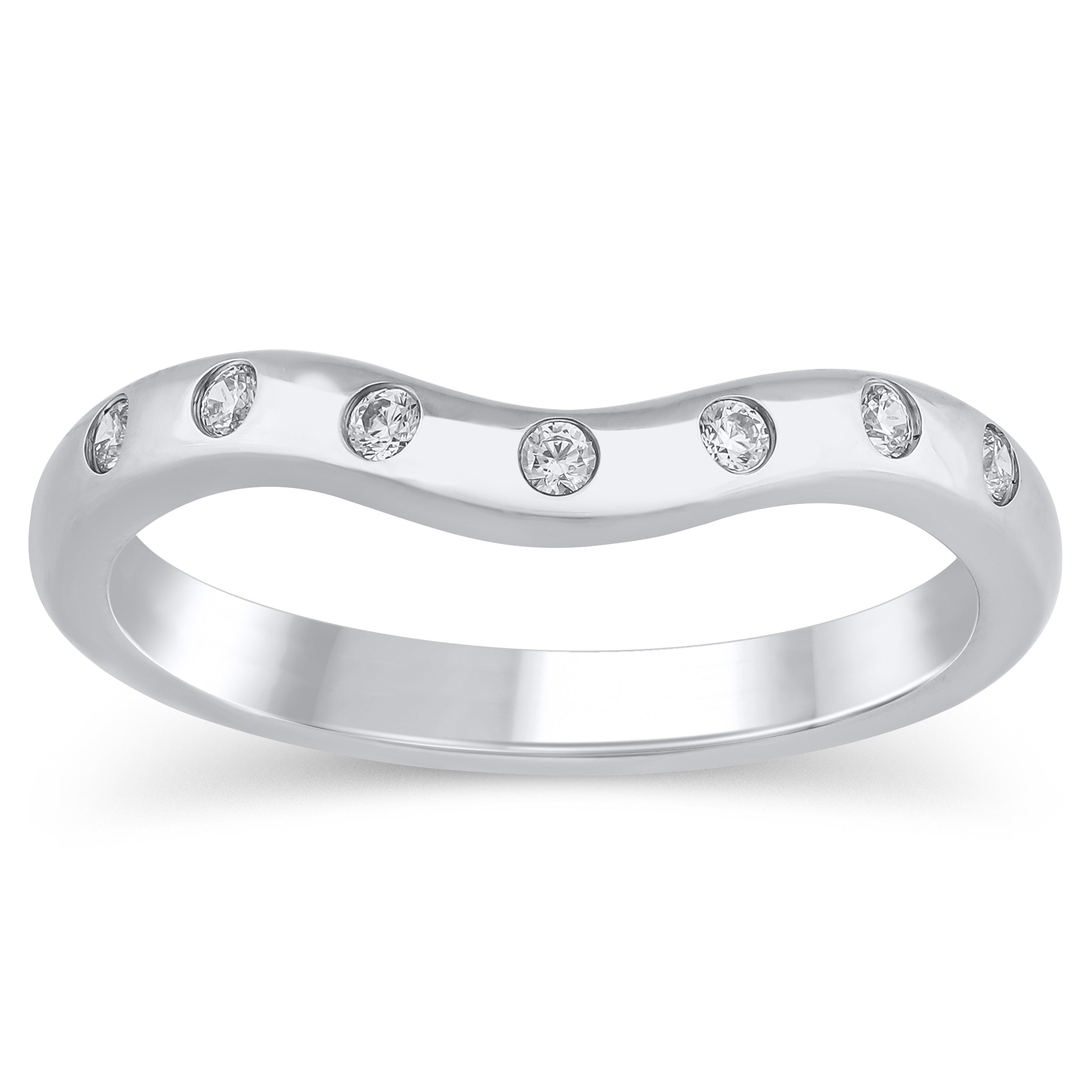 14Kt White Gold Contoured Astre Band With 7 Round Natural Diamonds Totaling .10cttw (I color - SI2 Clarity)