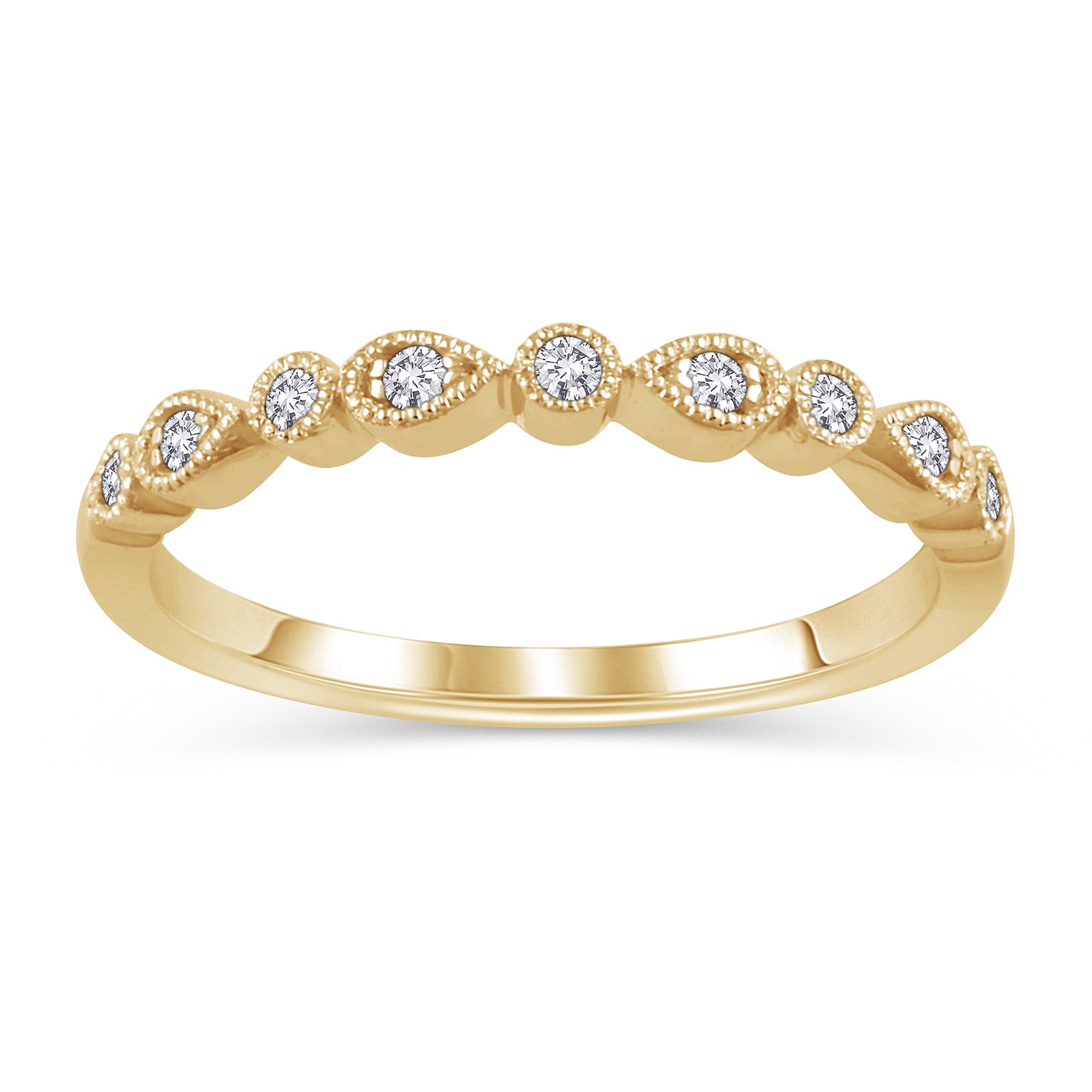 14KT Yellow Gold Scalloped Miligrain Diamond Stackable Band With 9 Round Natural Diamonds Totaling .10cttw (H Color - SI2 Clarity)