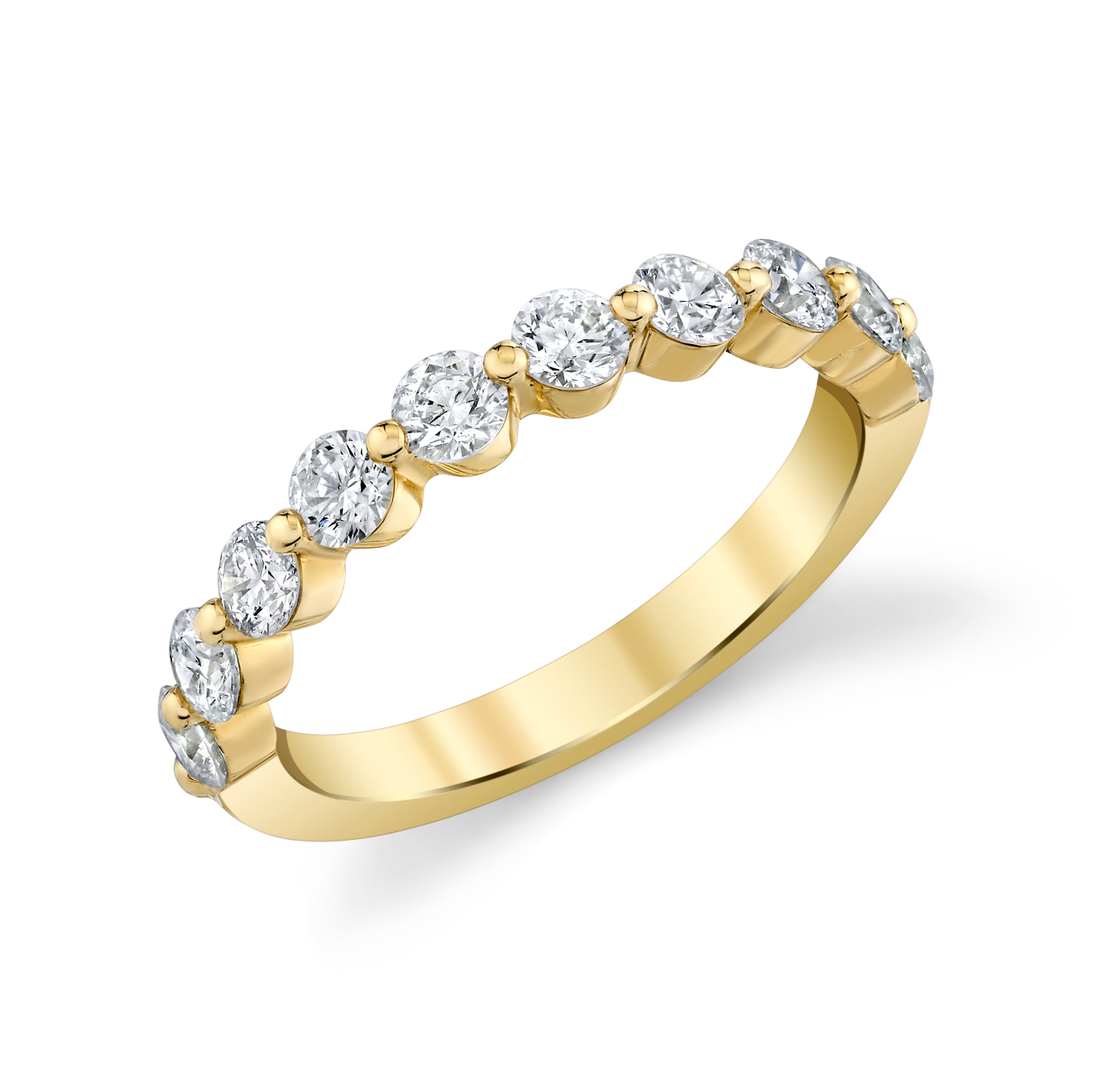 Vanessa Single Prong Stackable Band in 14Kt Yellow Gold with 10 Round Diamonds Totaling 1cttw (I Color - SI1 Clarity)