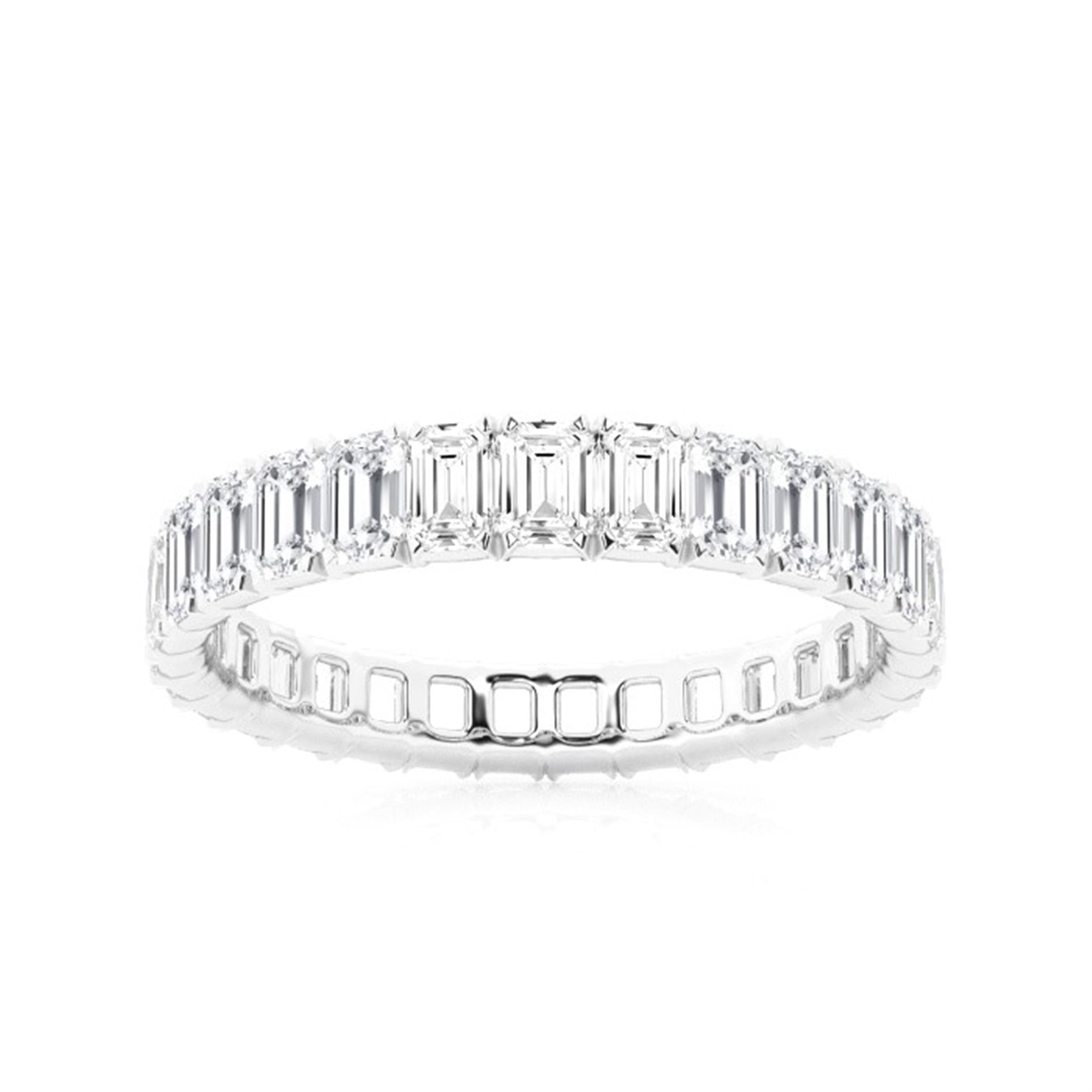 14Kt White Gold Eternity Band with Prong Set Emerald Cut Natural Diamonds Totaling 4.72cttw (H Color - VS2 Clarity, 1/5ct Each) Finger Size 7