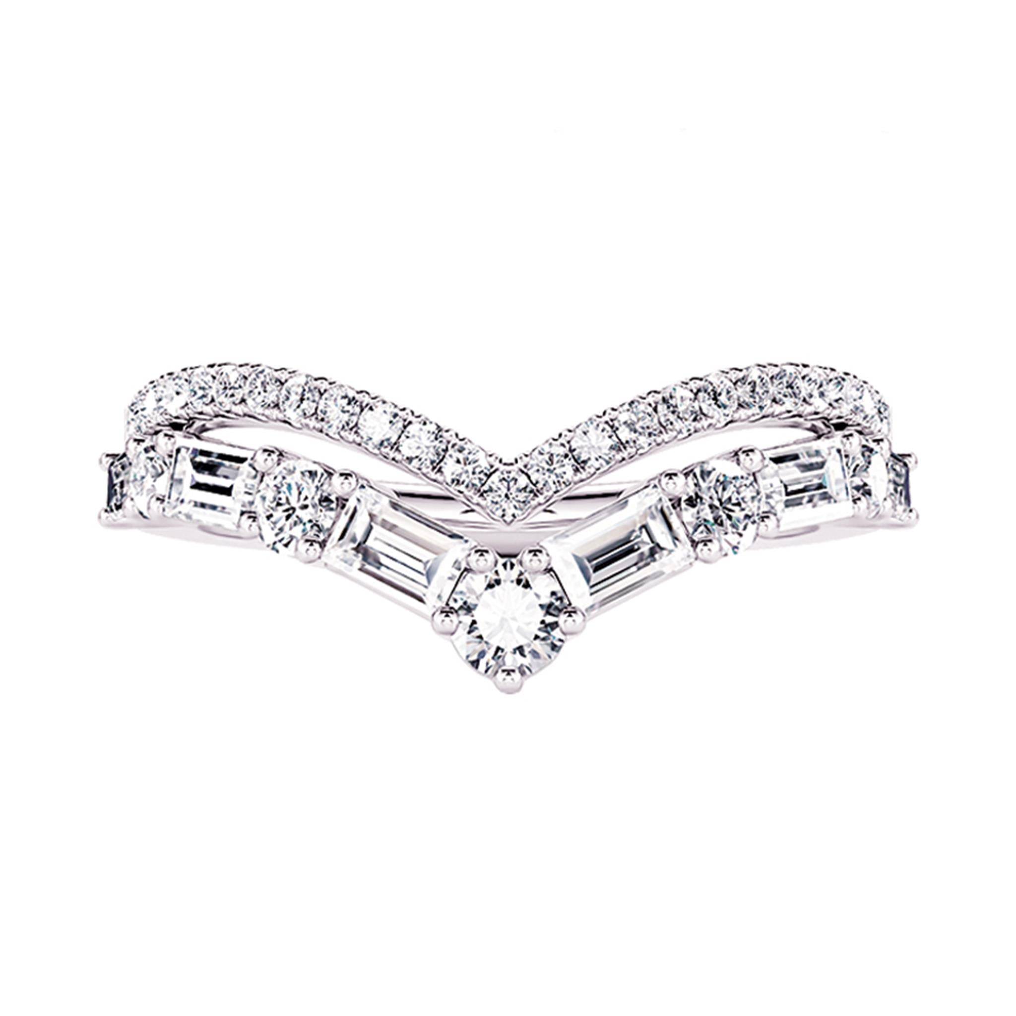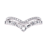 14K White Gold Double Row Chevron-Style Tiara Band with .55cttw Natural Diamonds (30 Rounds = 0.26cttw and 5 Baguettes = 0.29cttw) G/H Color - SI1 Clarity