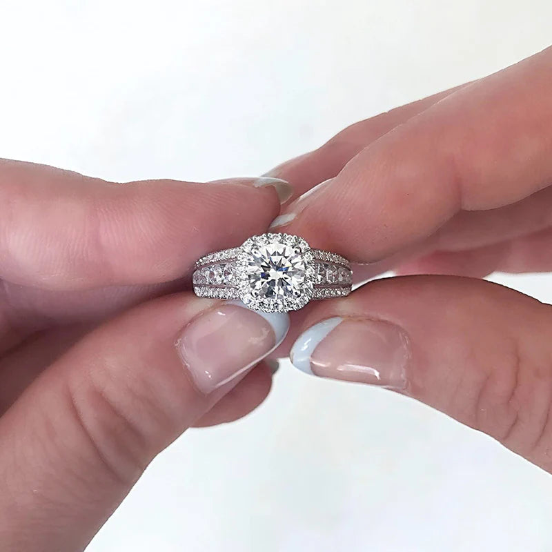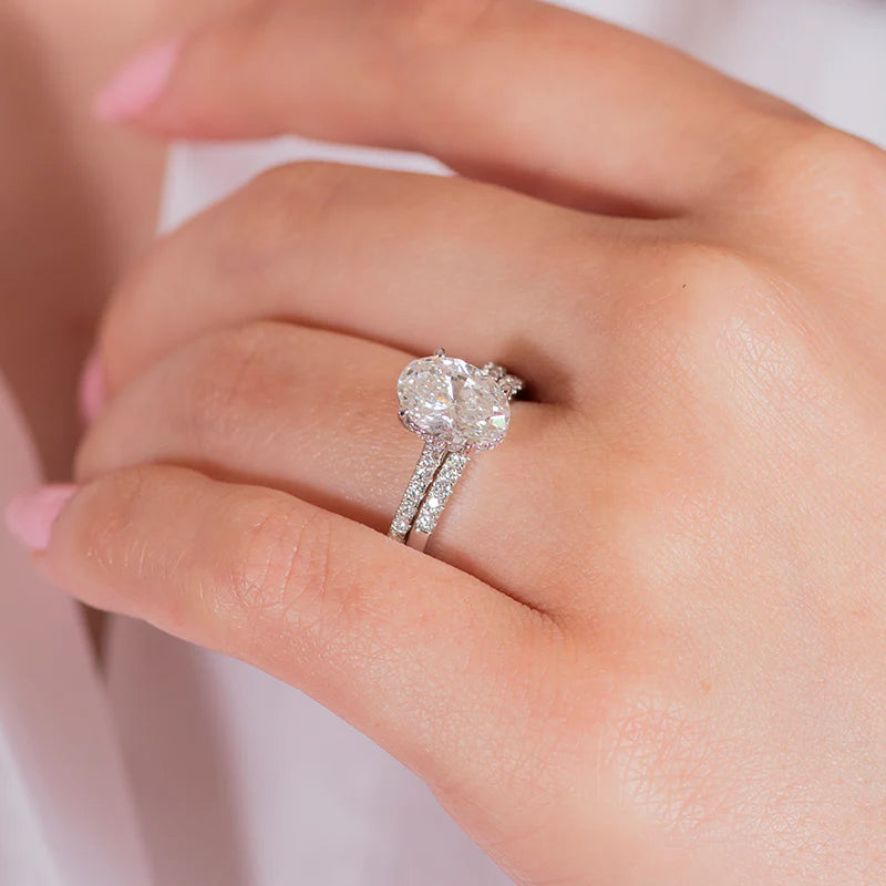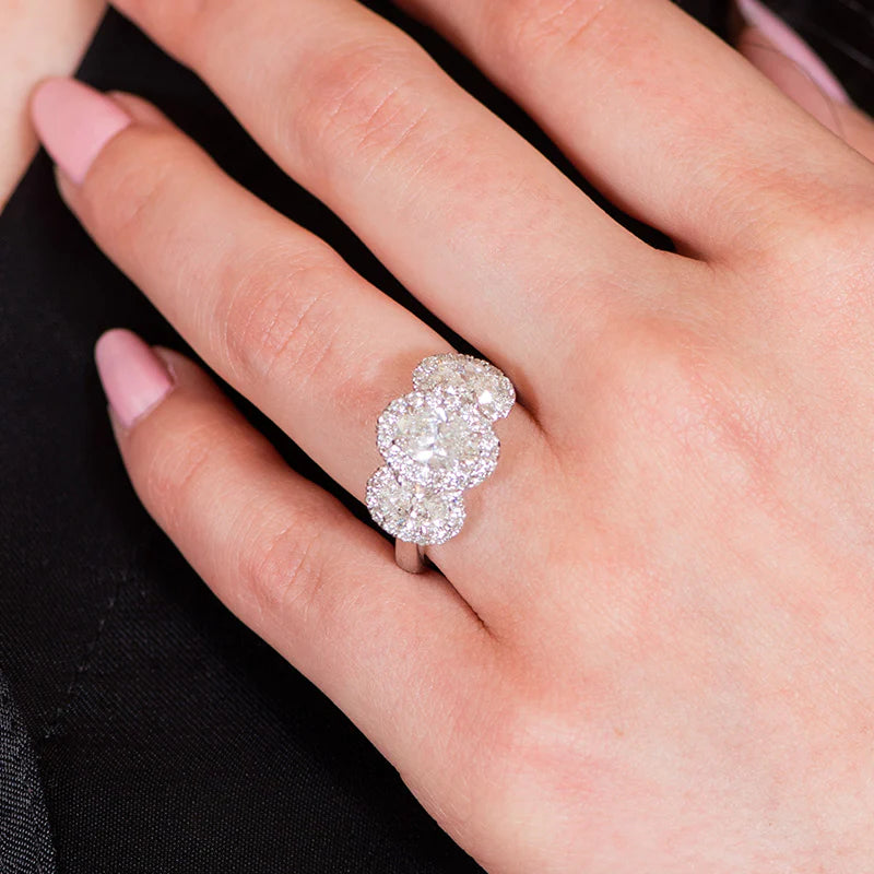 Halo: A ring featuring a central diamond or stone surrounded by smaller diamonds or stones, creating a halo effect.